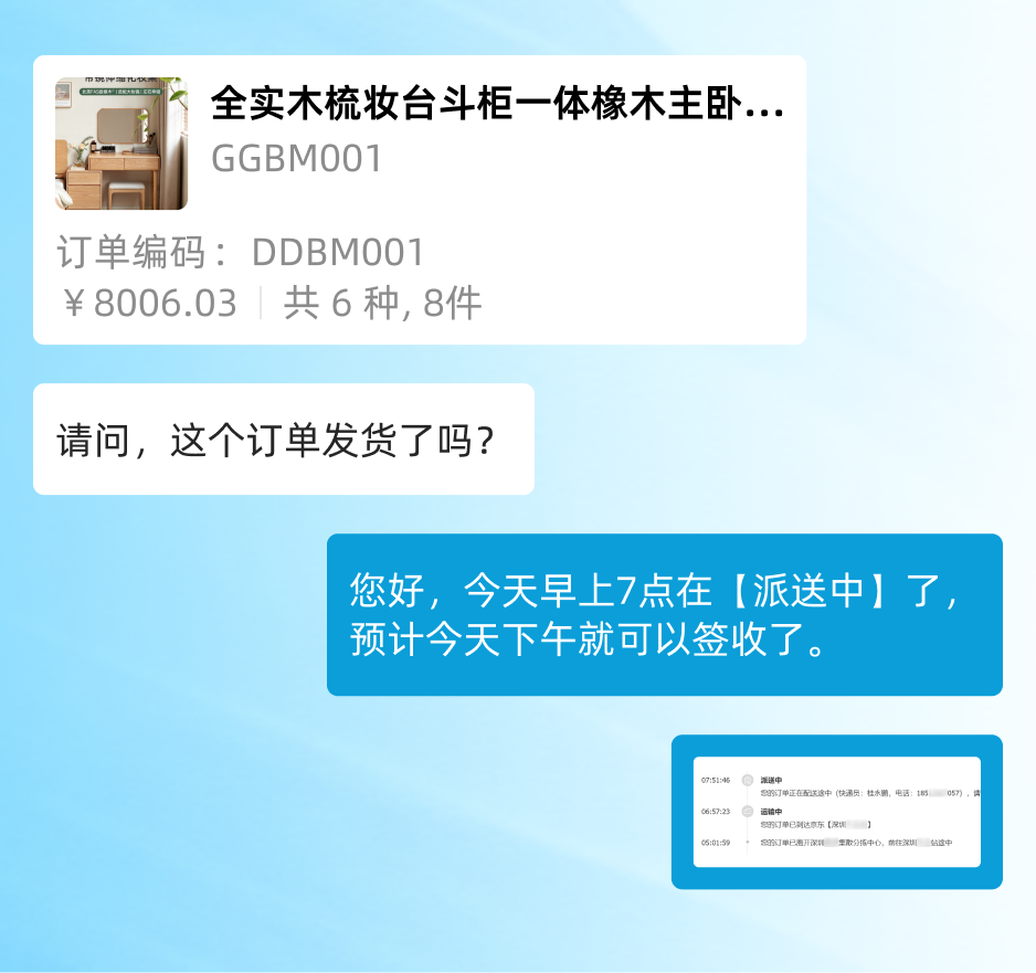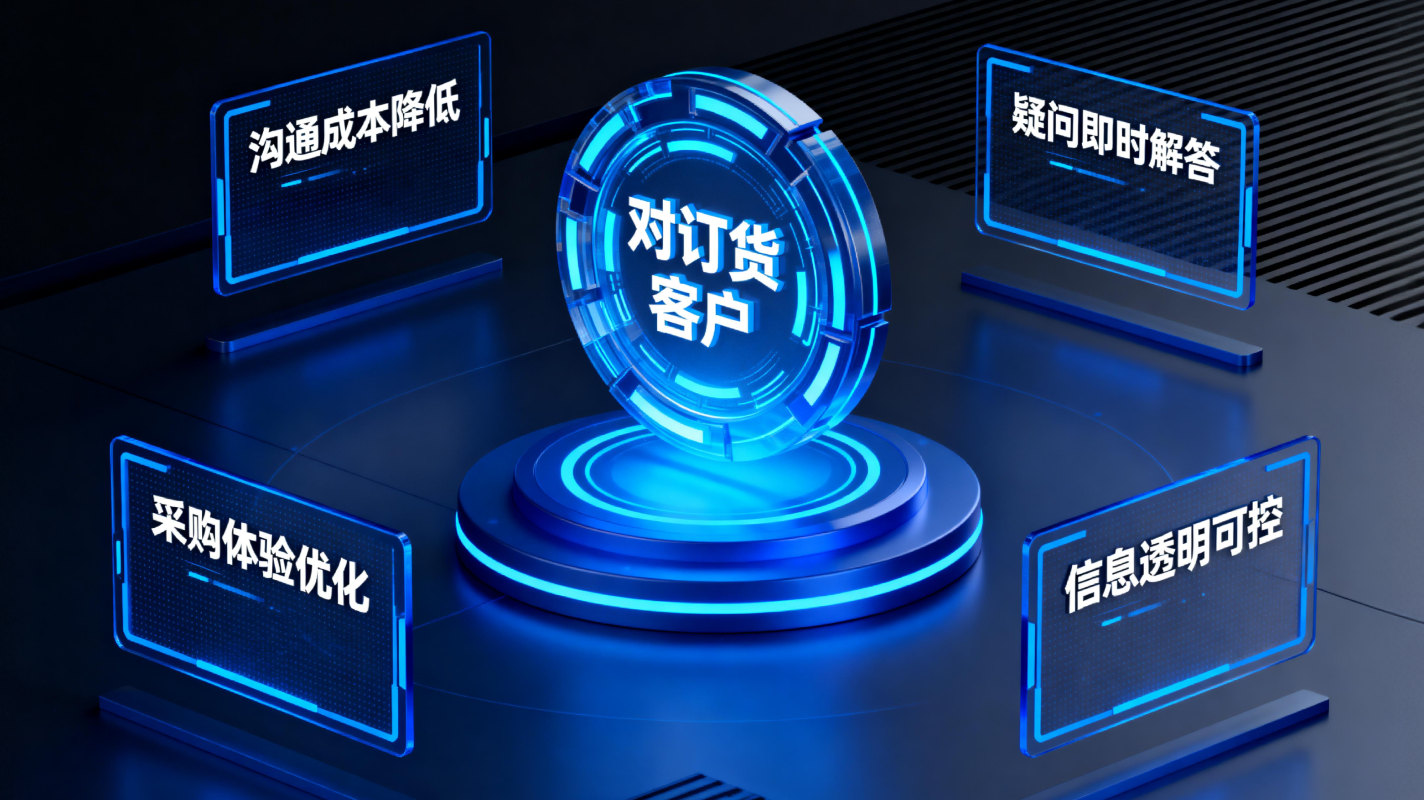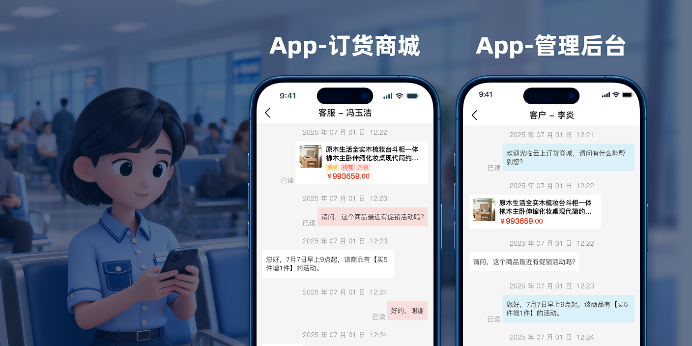 打通 [PC端] + [移动端],深度适配订货流程场景,无缝连接 [订货客户] 与 [平台客服],实现实时互动、消除延迟,彻底告别沟通断层